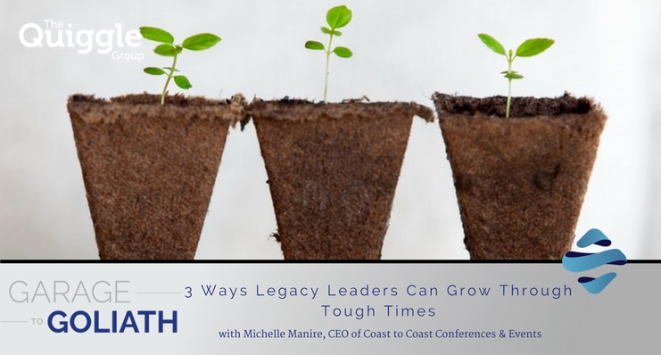 A few months ago, I was interviewed for an episode of Dan Quiggle’s Garage to Goliath podcast, to talk about 3 ways legacy leaders can grow through tough times. Dan was a speaker at my Vistage group last year and delivered a power-packed speech with tangible action items for CEOs and leaders, so I was excited to speak with him and share my experience of building Coast to Coast Conferences & Events from the ground up.
